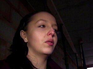 Une amatrice brune sexy Euro exhibe des seins en soutien-gorge rose dans un sous-sol calme en public, puis un faux agent lui enfonce une grosse bite dans la chatte par derrière et la baise en pov