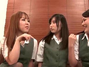 Trois écolières japonaises utilisent leurs pieds sur une trique poilue