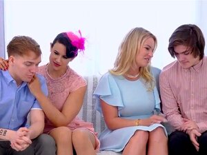 La MILF Eva et la mignonne Kacy Lane baisent un mec chanceux dans un plan à trois, la MILF Eva casse la mignonne Kacy en train de se faire baiser par son copain. Eva met Kacy en honte en la regardant sucer son mec. Eva devient chaude alors elle se joint à