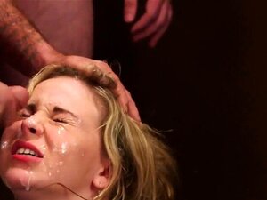 Salope bukkake gangbangée. Salope bukkake gangbangée se fait couvrir le visage de sperme chaud