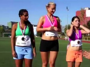 Des mignonnes sportives sucent la bite des coachs dans un gangba dans les vestiaires