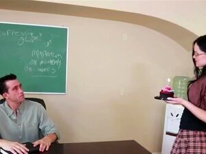 Jenna J Ross & Billy Glide dans Naughty Book Worms, l'étudiante Jenna J. Ross aime tellement la classe du professeur Glide qu'elle se souvient de son anniversaire et lui apporte un petit gâteau ! Alors quand il congédie les étudiants dégénérés, peu recon