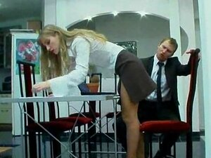 La patronne baise sa secrétaire en talons hauts et éjacule sur ses jambes chaudes