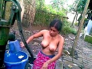 BANGLADESHI - Fille Deshi se baignant en plein air et enregistre