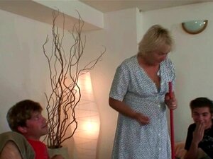 Vieille femme de ménage séduite pour un plan à trois. Vieille femme de ménage séduite dans un plan à trois