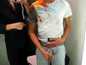 Gays se branlant dans le vestiaire, moi et mon pote gay devenons coquins en faisant du shopping. Ensemble dans le vestiaire avec des gens dehors, on se branle tous les deux et on se fout à poil, touchant et embrassant un peu et jouissant