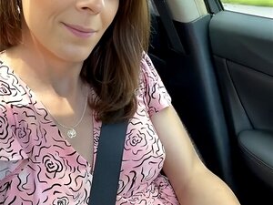 Un chauffeur de taxi mince baise un client dans un taxi. Une blonde mince et fausse conductrice de taxi en jean et seins nus suce une bite sur la banquette arrière, puis il la baise pendant qu'ils sont garés en public