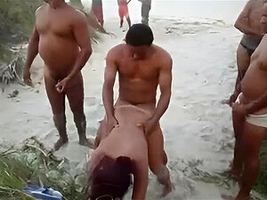 Éjaculation au paradis-Mec sexy nu sur une plage publique