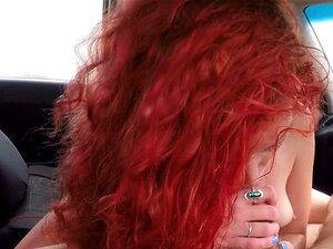 Une nana rousse bouclée baise son instructeur. Une étudiante en conduite rousse et bouclée a des cours avec un faux instructeur de collège britannique et ensuite elle le chevauche en cowgirl inversée et le suce en POV en public