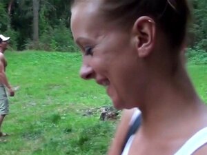 Salope tchèque montre ses seins et se fait baiser fort dans les bois. Salope tchèque amateur montre ses beaux seins et se fait visser la chatte durement dans les bois en échange de l'argent
