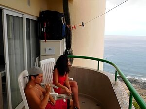 Couple Excité Sexe Réel Sur Le Balcon De La Plage De Vacances