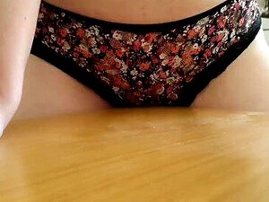 Sunny se déshabille à sa table de cuisine. Sunny est à sa table de cuisine en robe rayée, et nous montre ses aisselles et ses jambes poilues, Elle se déshabille et saute sur la table, Là, elle touche sa chatte poilue, se doigte le clito, et profite de sa