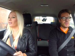 La blonde aux gros seins Michelle Thorne se fait baiser dans la chatte par un instructeur de conduite dégueulasse dans la voiture