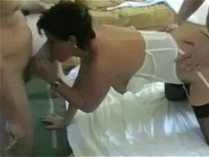 Regardez une épouse excitée s'occuper de deux bites pendant que son mari cocu regarde. Véritable action de trio fait maison avec une chaude maman cougar. Sexe oral, caresses et sexe de groupe inclus.